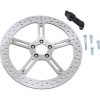 Arlen Ness’s Big Brake Floating Rotor Kits will greatly increase your ride’s breaking performance as well as improve the overall look of your factory wheel. The Floating Rotor Kit utilizes the factory brake caliper, brake line, and wheel. Choose for the right or left side, and please note 15″ kits are built to work with factory fork legs but NOT with Arlen Ness’s “Hot Legs” fork legs.