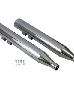 These are 4″ diameter slip-on mufflers with 16-gauge steel construction and detachable flow-through baffles. There are also bolts to stock locations with supplied hardware.