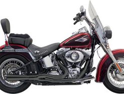 The Road Rage 2-into-1 Exhaust System by Bassani will enhance the performance of your Softail. This exhaust has a megaphone style muffler body and is available in Chrome w/ full chrome heat shields and Black w/ full black heat shields.