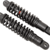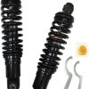- Black shocks feature black springs and damper bodies with black end caps/eyelets