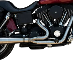 Trask’s new performance Stainless 2 into 1 Exhaust System for Dyna Models is a sure way to add more power to your Harley Davidson Dyna. A 2 into 1 exhaust system is usually one of the fist performance upgrades you can do to get a little more power out of your machine. This exhaust system is made from the highest quality stainless steel materials,mandrel bent and then tig welded. The pipe is tested and developed on a dynamometer, and is entirely researched, developed and manufactured at Trask’s Phoenix Arizona facility.