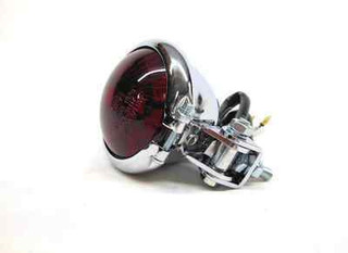 LED round tail lamp is chrome with red lens includes a 2 bolt adjustable base mount. Tail lamp measures 2-1/4″ in diameter and 2.204″ long.