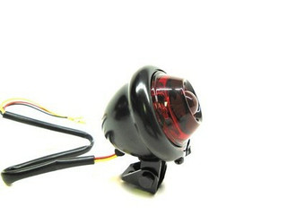 - LED round tail lamp is black with red lens includes a 2 bolt adjustable base mount.